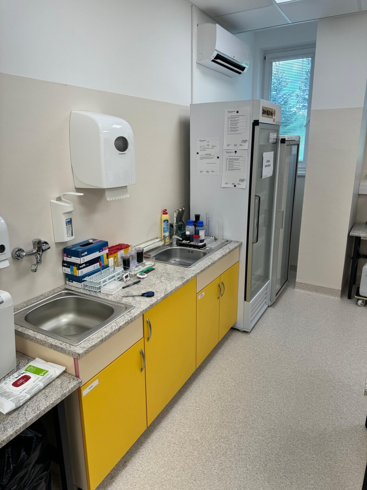 To achieve the highest level of cleanliness and hygiene, the walls in the blood laboratories were lined with special vinyl. This material is easy to maintain, resistant to chemicals and contributes significantly to maintaining the sterile environment that is essential for laboratory operations. The same approach was applied to the corridors and headquarters areas, ensuring a consistent level of cleanliness and aesthetic appearance throughout the building.